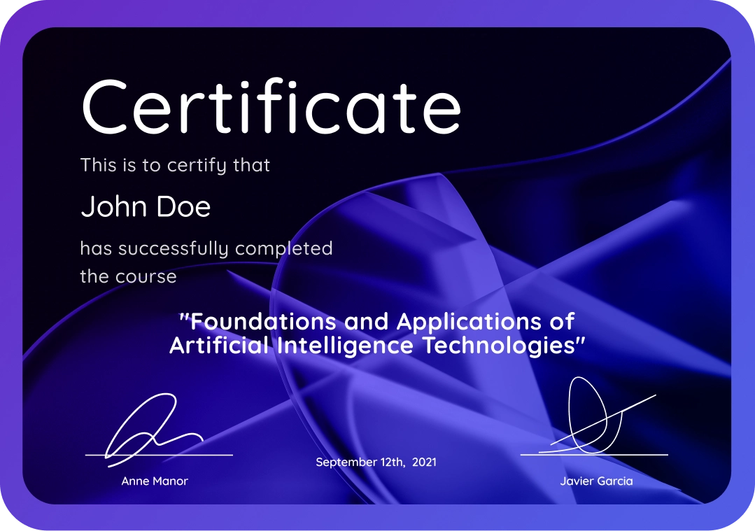 After completing the course and the final shoot, you will receive a certificate that will certify that you have acquired thorough knowledge and skills in the use of artificial intelligence in the automation of business processes.